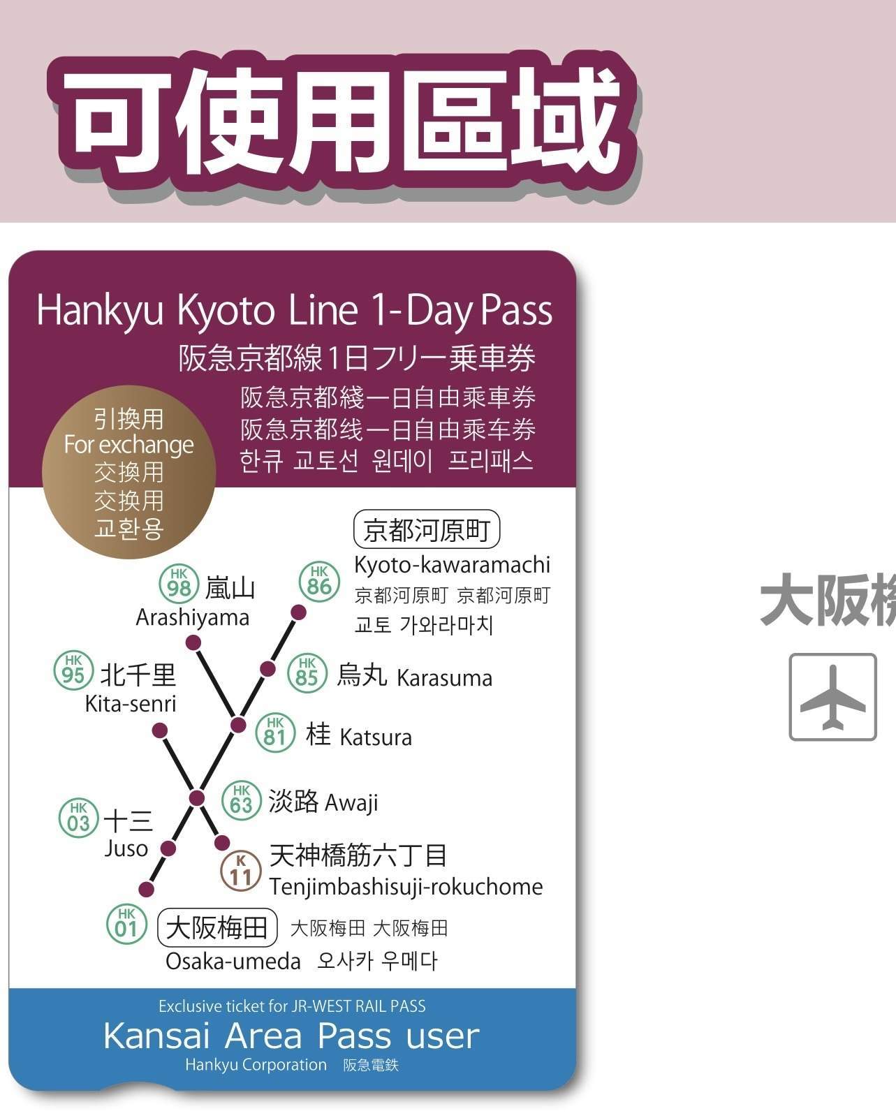 - 兌換地點 阪急梅田 | 京都河原町 | 烏丸
